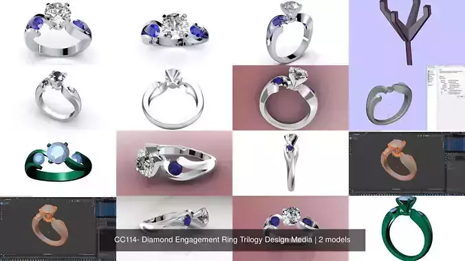 CC114- Diamond Engagement Ring Trilogy Design Media 3D Model Collection