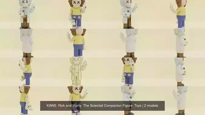 Dive into an interdimensional crossover with this exclusive 3D model collection, featuring the KAWS x Rick Sanchez and KAWS x Morty Smith figures. This unique bundle brings together the cynical genius and his anxious grandson, both reimagined through the iconic lens of contemporary art toys. Perfect for high-quality renders, animation projects, or as a centerpiece for any digital pop culture collection.