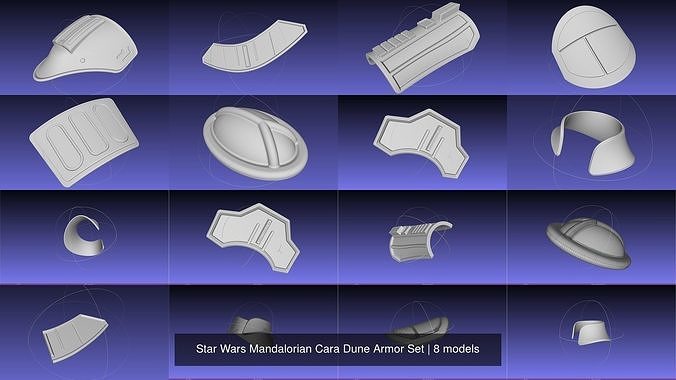 A set of 3d-printable models of armor pieces worn by Carasynthia Dune from the Star Wars Mandalorian seriesall models are designed for easy printability