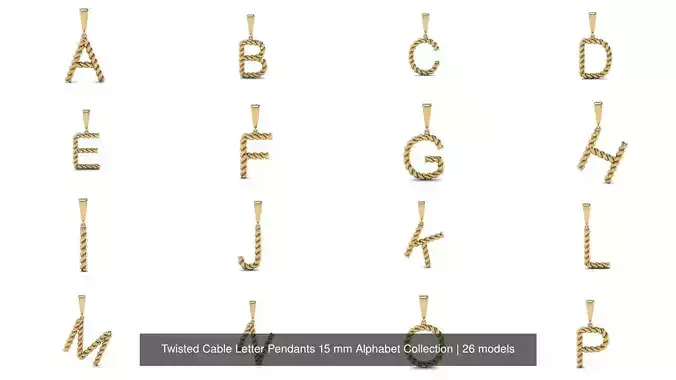 Twisted Cable Letter Pendants 15 mm Alphabet Collection, 3d printable models.