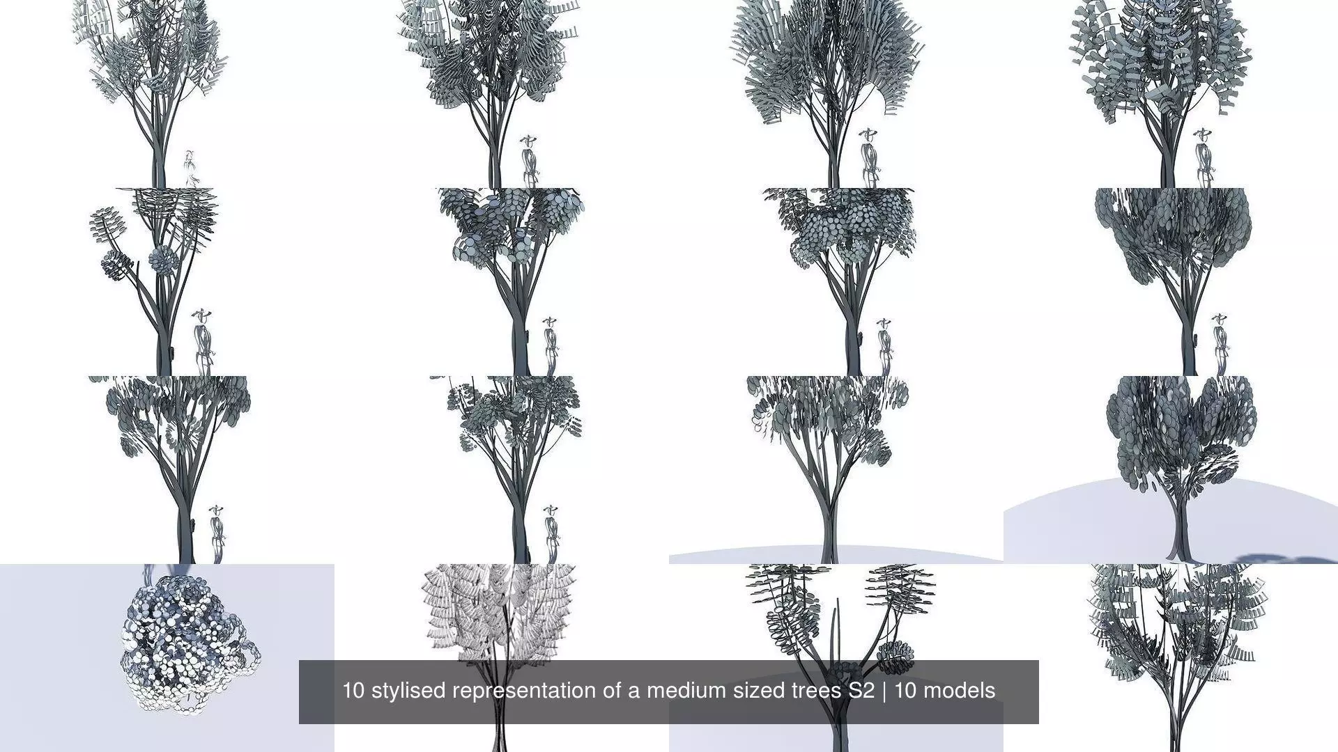 10 stylised representation of a medium sized trees S2 3D Model Pack