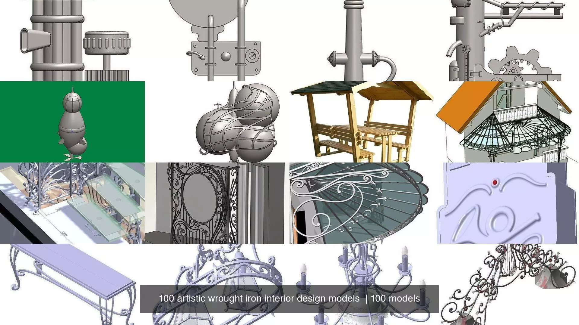 Formats of files are solid works formats (ensembles and parts) Catia(CATPart) ,Autodesk FBX (.fbx),Stereolithography (.stl),OBJ (.obj, .mtl)95% of models can be manufactured (scale is realistic).Please chek my other models also.Most of the material used are flat strip, solid square profile, rectangular pipe, solid round steel, wood, glass and so on.At request i have 2D drawings in autocad format and catia, i charge 5usd / model.