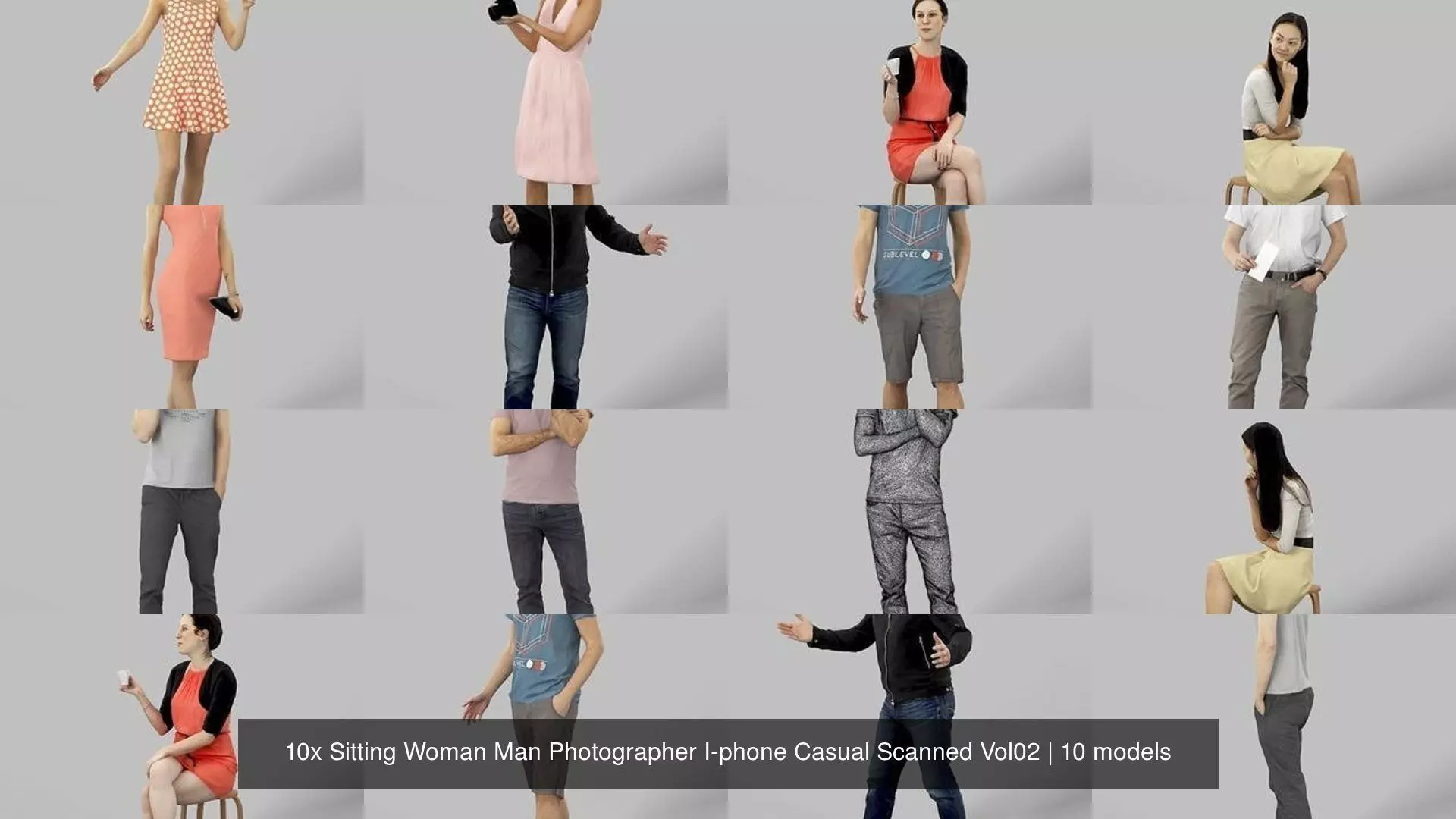 10x Sitting Woman Man Photographer I-phone Casual Scanned Vol02 3D Model Pack