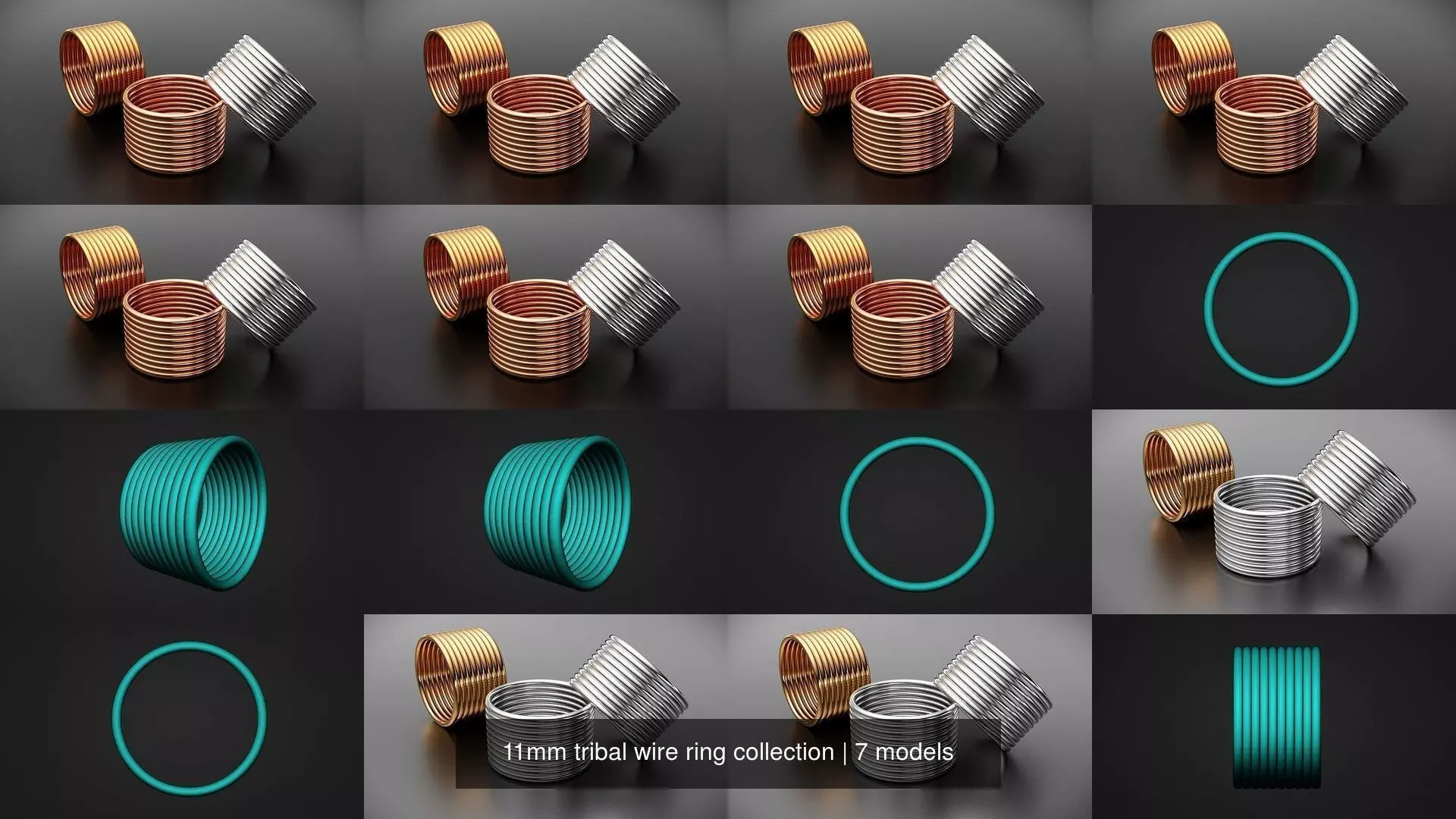 11mm solid one piece 10 wire ring collection includes US sizes 5, 6, 7, 8, 9, 10, 11 9total 7 pcs)