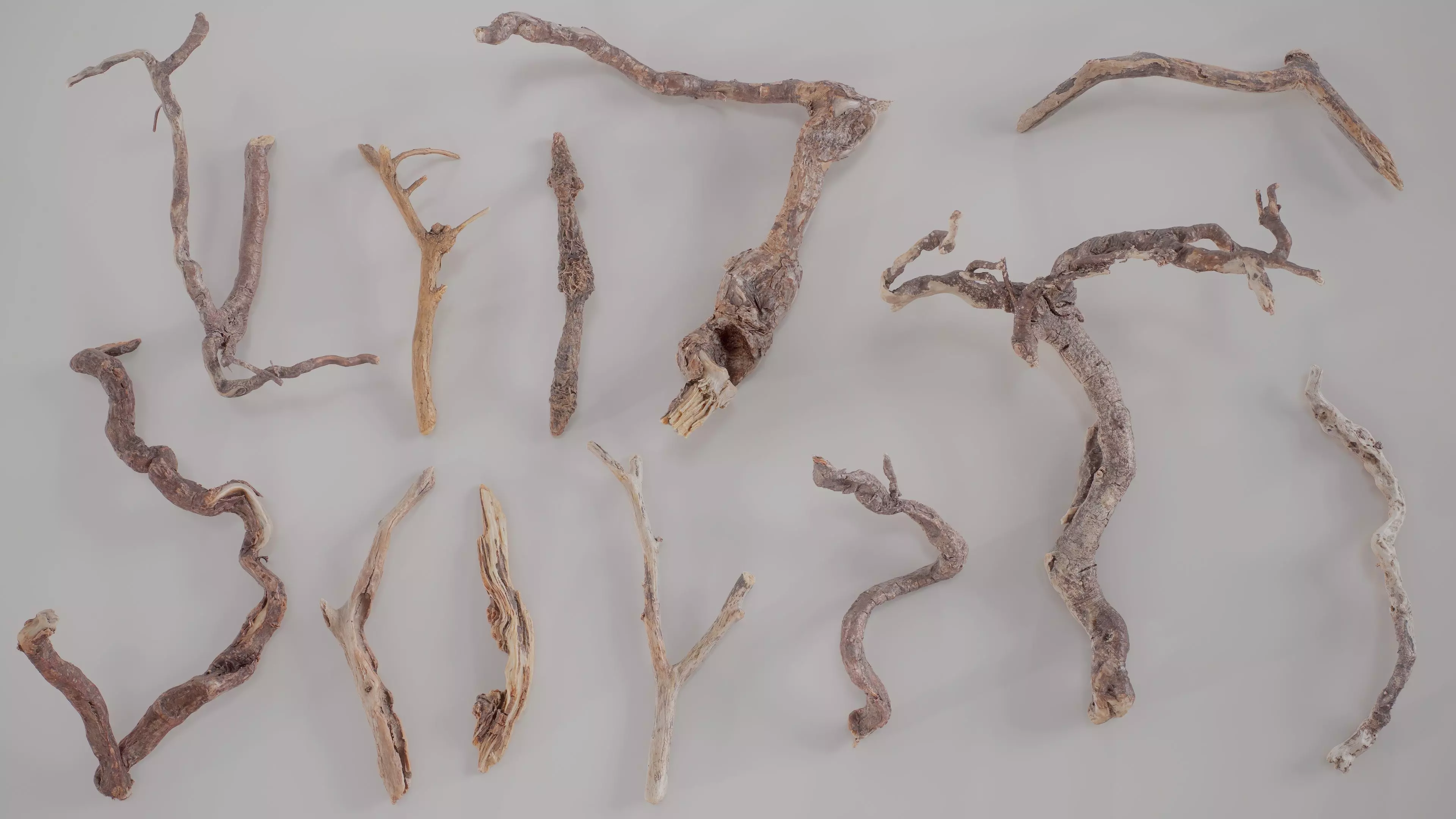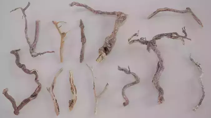 12 3D Scanned Realistic Branches and Roots 3D Model Pack
