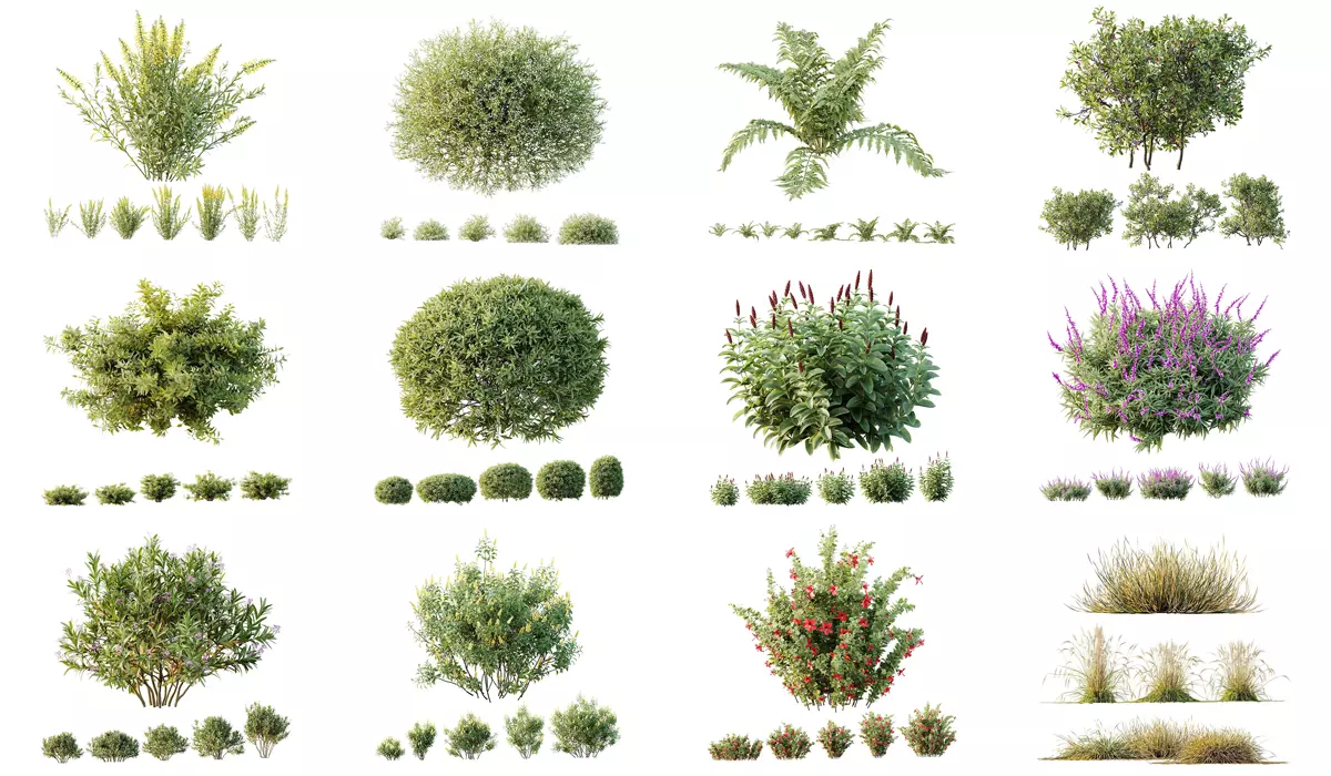 12 Different SETS of Plant Bush SET VOL144 3D Model Pack