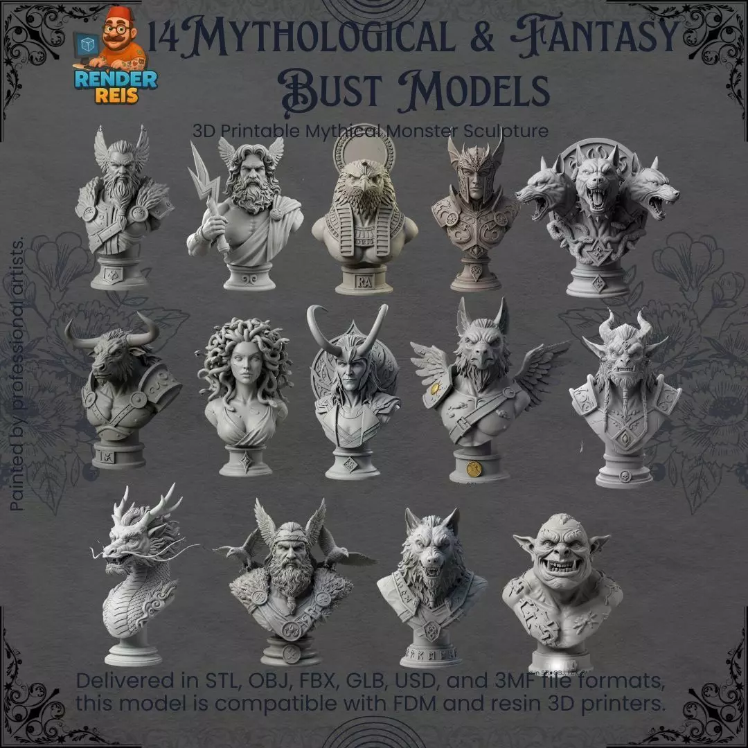 Bring ancient legends and fantasy realms to life with this incredible set of 14 highly detailed 3D printable busts! From powerful gods and mythological figures to enchanted sorcerers and fantastical warriors, this collection is perfect for fans of epic stories, model painting, and tabletop display.