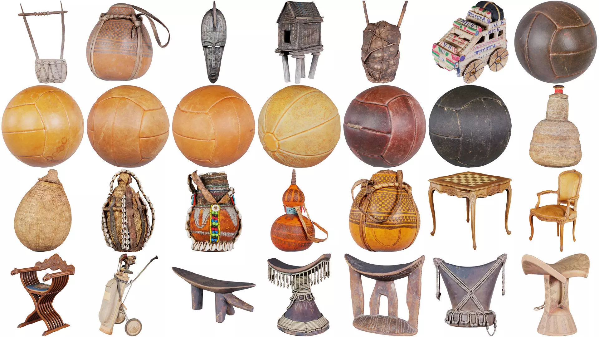 3D scanned indoor decoration elements: Balls, scales, statues, art, mannequins, animals,...