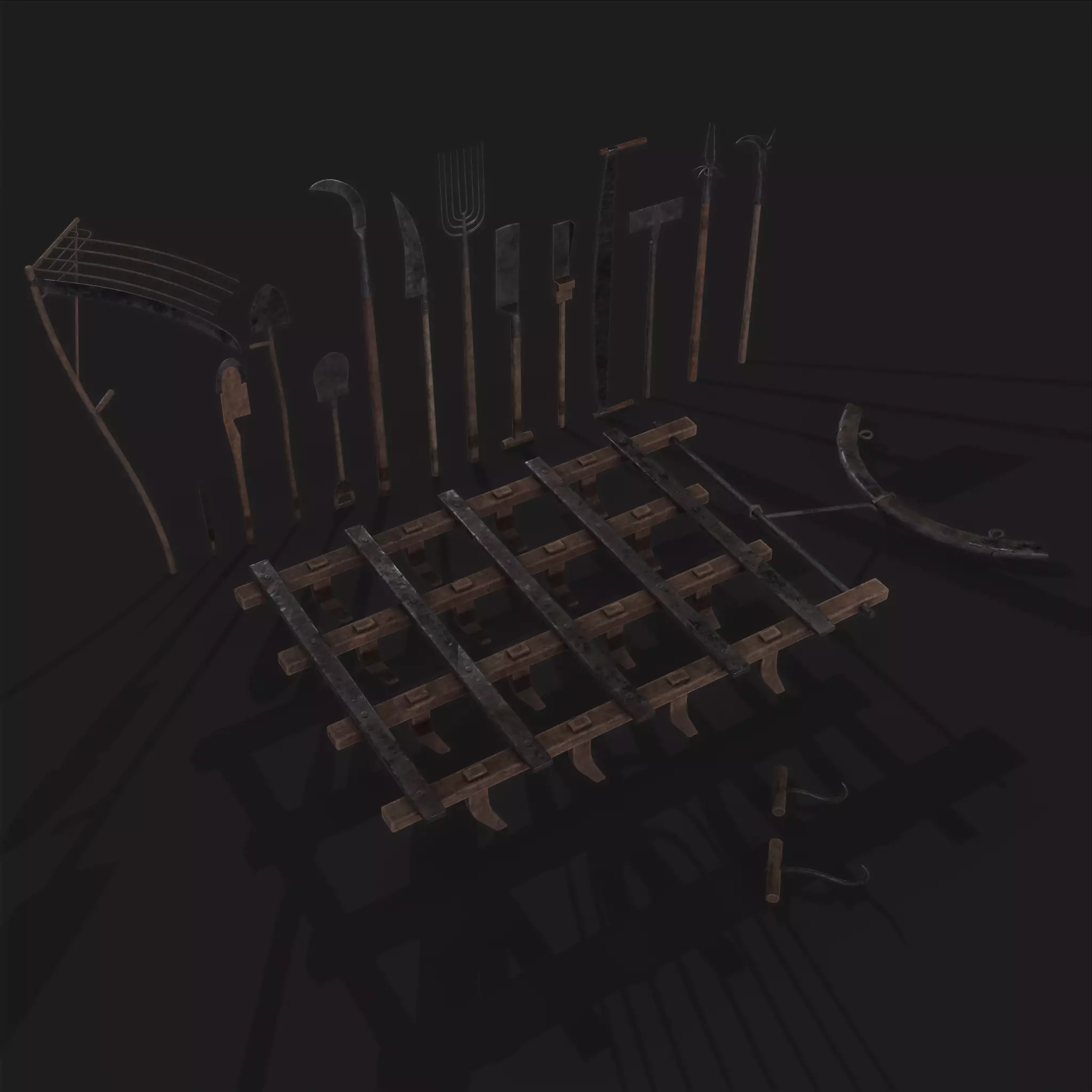 15 Medieval Farmers Tools and Plow Pack High Quality Pack 3D Models PBR Texture available in 4096 x 4096 Maps include : Basecolor, Normal, Roughness, and Metallic. All Preview renders were done Marmoset Toolbag 4 Scaled to real world scale. Customer Service Guaranteed. From the Creators at Get Dead Entertainment. Please like and Rate! Follow us on FaceBook and Instagram to keep updated on all our newest models.
