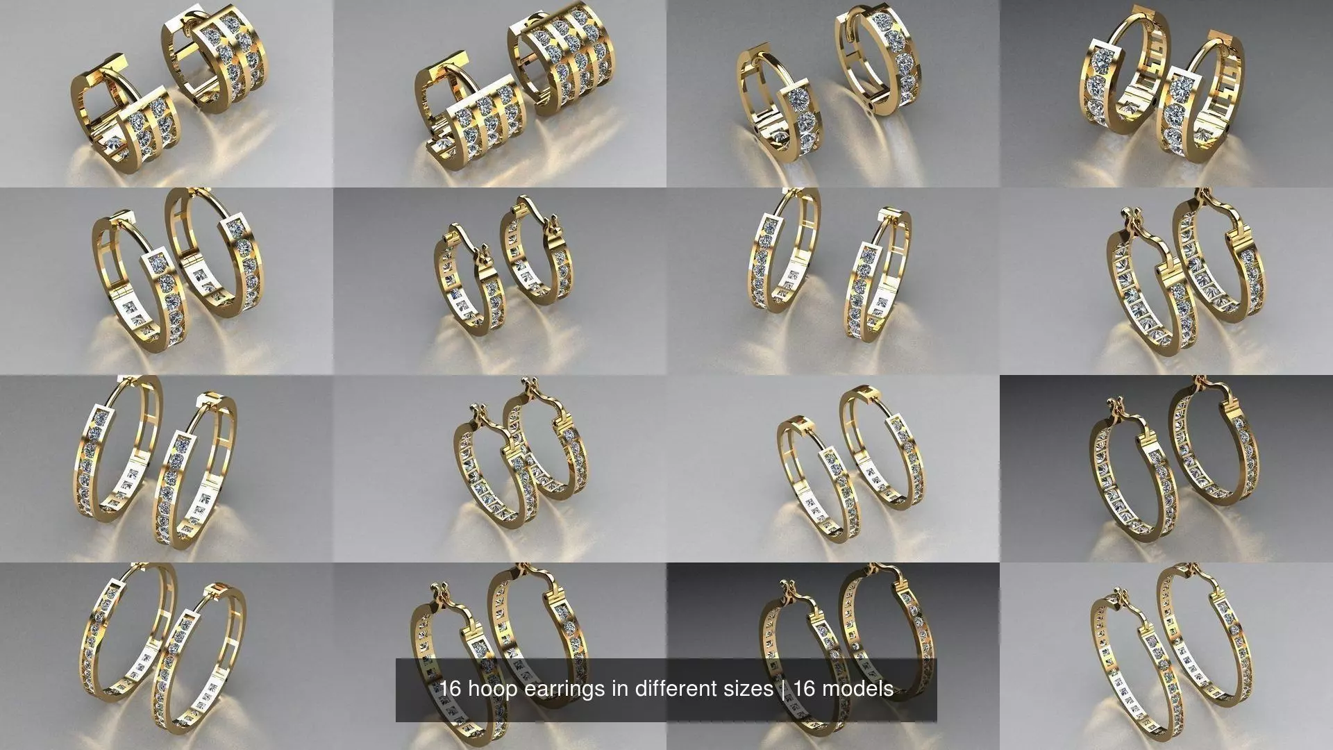 16 hoop earrings in different sizesjewelry earrings ready to 3d print and casting