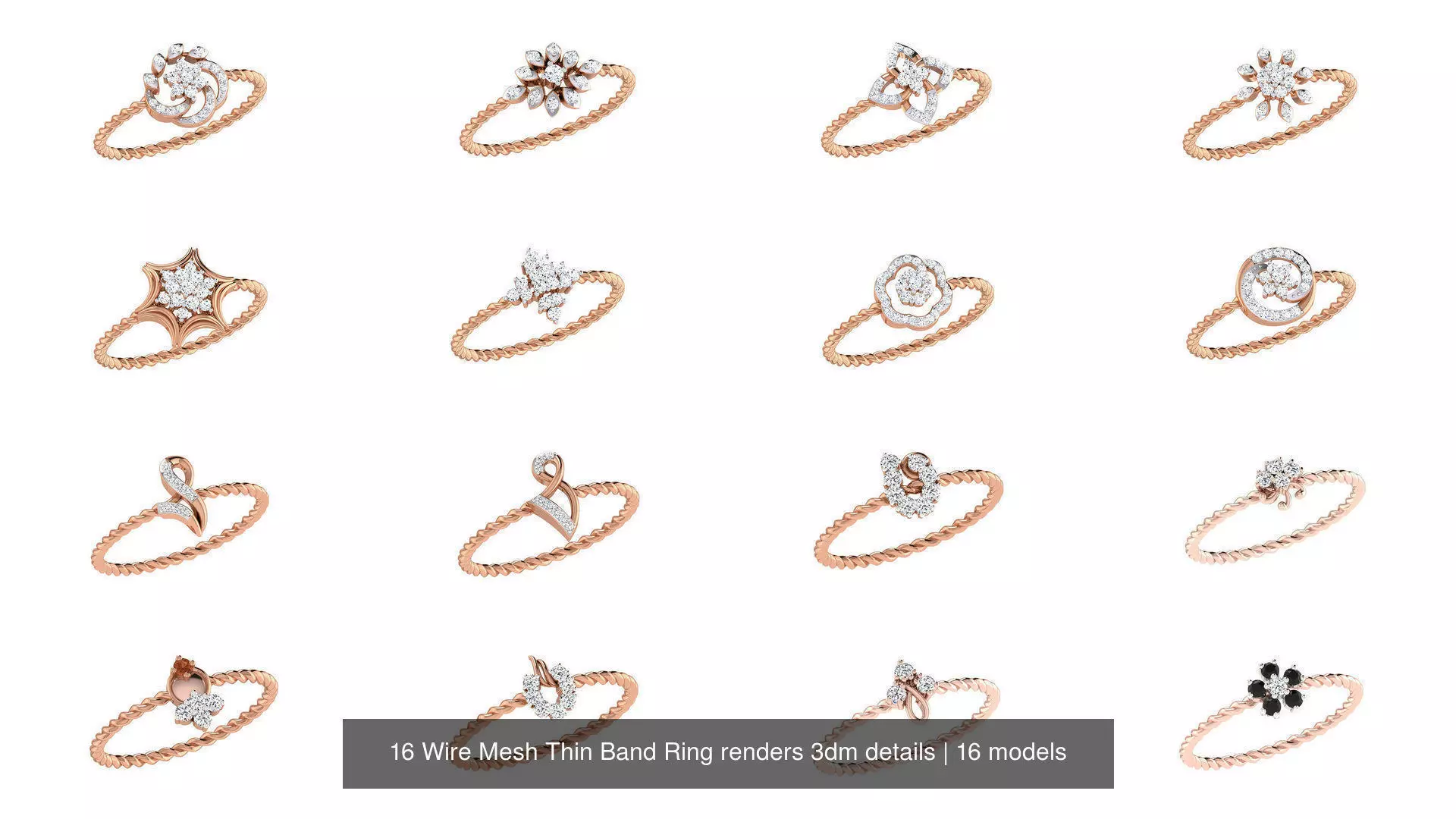 16 Wire Mesh Thin Band Ring renders 3dm details 3D Model Pack