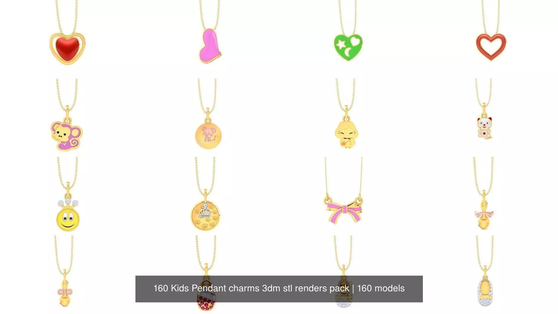 160 Kids Pendant charms 3dm stl renders pack