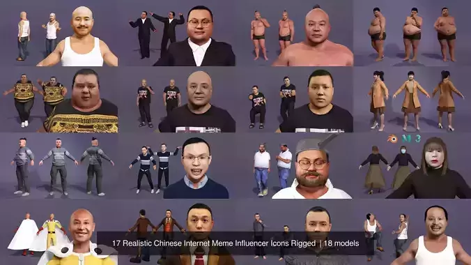 Product Overview: This bundle features 17 top-tier influencers and internet meme icons from the Chinese digital landscape. Meticulously optimized for professional animation workflows, the key advantage is its full compatibility with the Unreal Engine (UE) Mannequin Skeleton, allowing users to leverage vast animation libraries instantly.