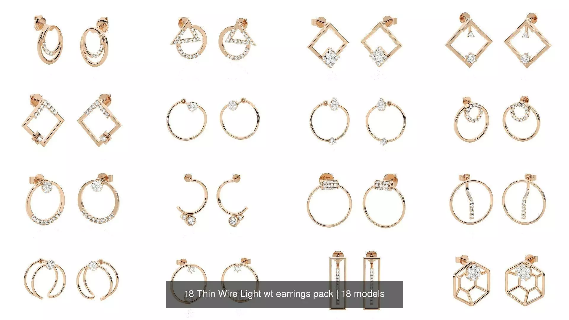 You will get renders in 3 colors, 3dm model, stl model and gem map for all earrings.