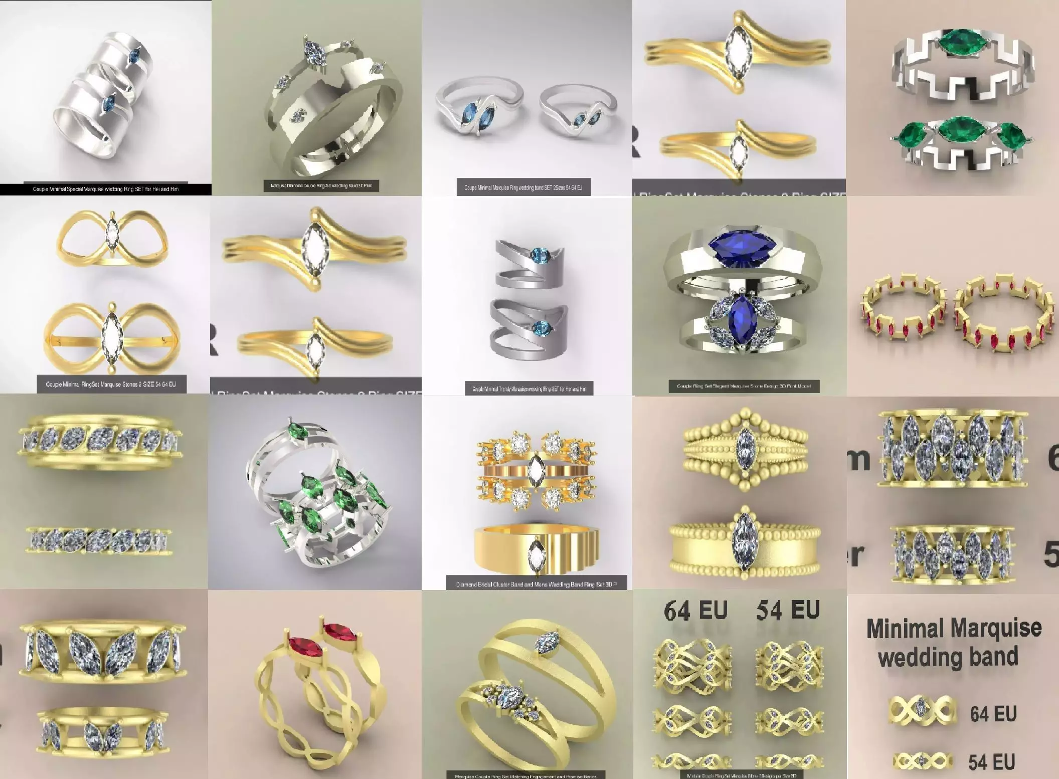This mega bundle includes professional couple ring sets designed around elegant marquise stone compositions.Perfect for jewelry designers, goldsmiths, and 3D printing studios looking to expand their wedding and engagement collections instantly.One successful design from this bundle can pay for the entire pack — the rest becomes pure profit, while saving you weeks of design time.Each set includes coordinated His & Hers rings, with a balance of minimal, classic, and elegant styles — making the collection suitable for a wide range of customers and budgets.