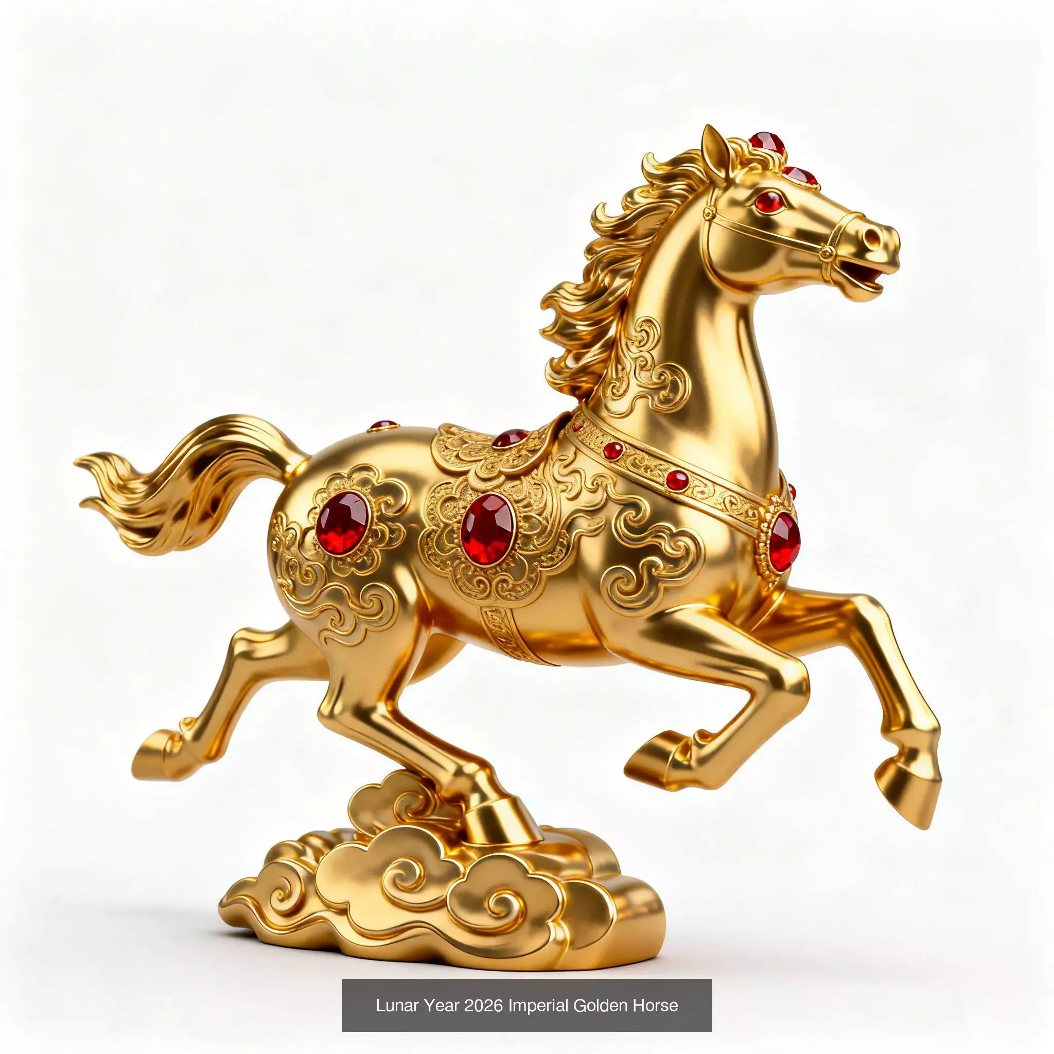 lunar new year, imperial horse, fire horse, golden horse, jade horse, 2026 zodiac, festive decoration, chinese new year, ornamental sculpture, cultural celebration, mascot character, seasonal event asset, decorative 3d model, collectible design, festival theme, luxury ornament, zodiac animal, 3d celebration asset