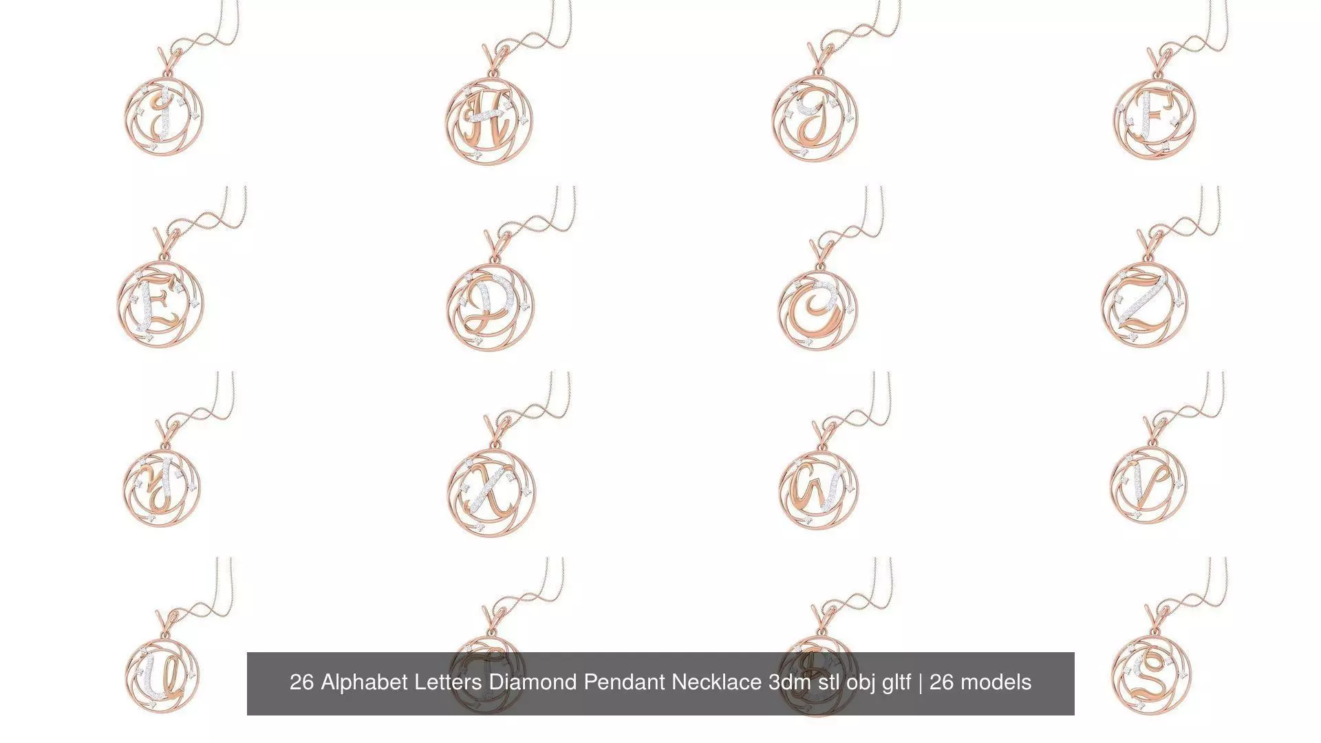 26 Alphabet Letters Diamond Pendant Necklace 3dm stl obj gltf glb 3mf