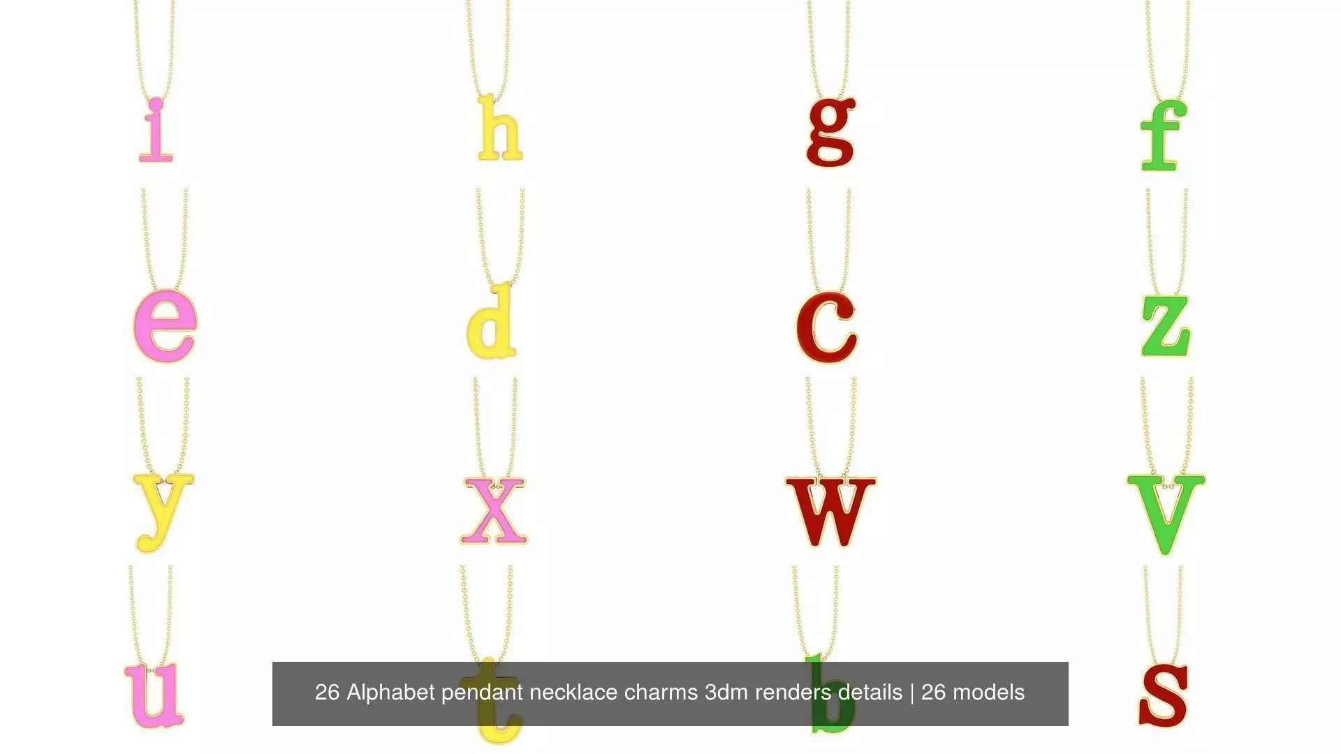 • 26 Alphabet pendant necklace charms 3dm renders details