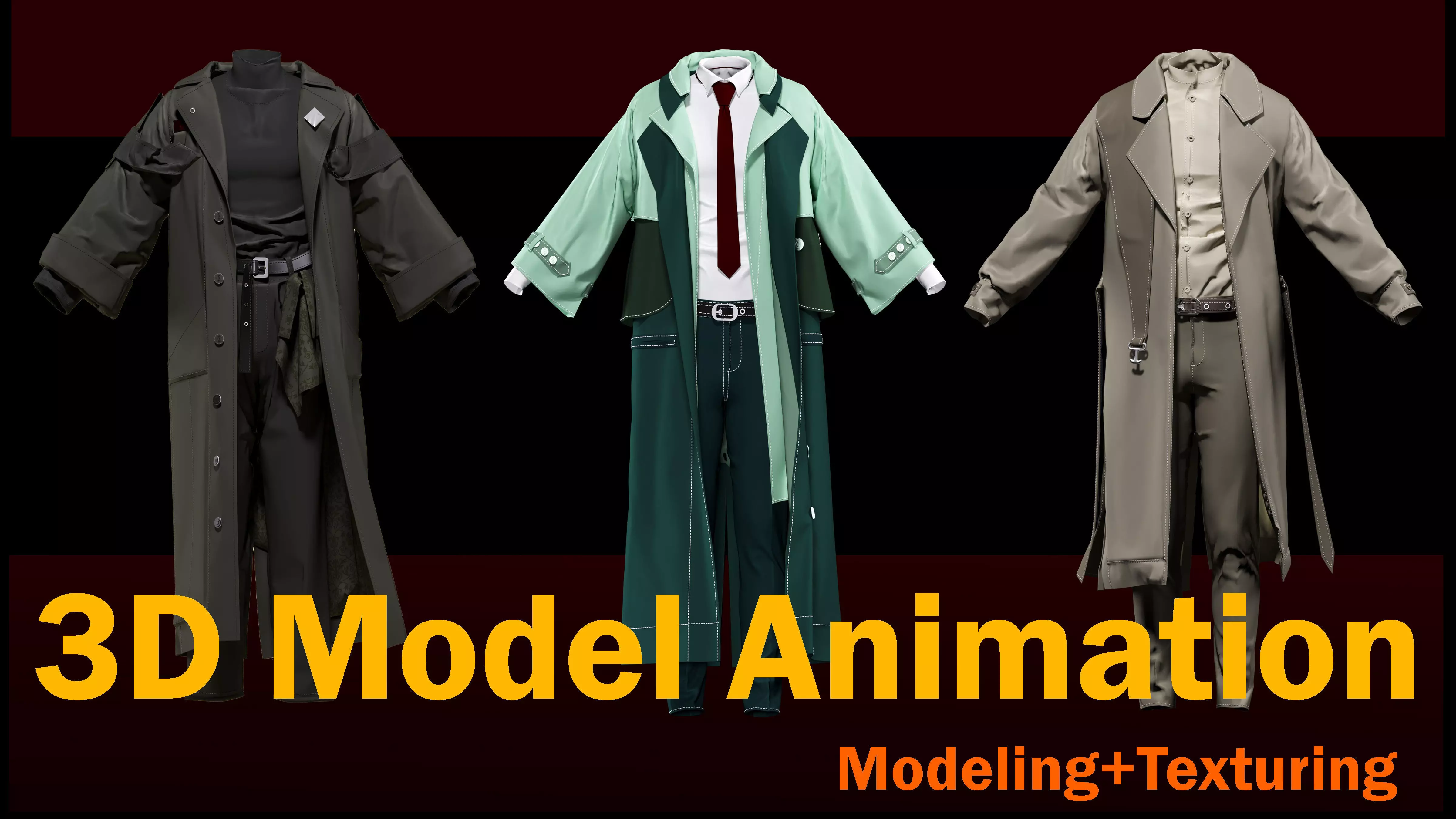 3 models of long coats 3D Model Pack