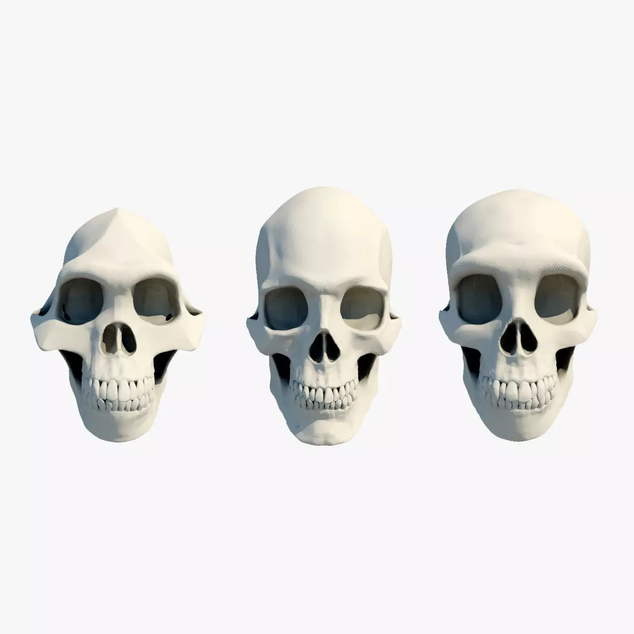 3 Skulls models. Neanderthal, Human and Australopithecus are also available separately.