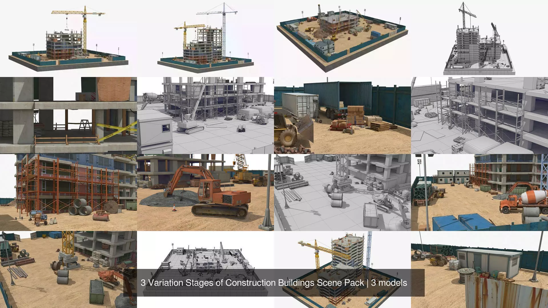 3 in 1 Volumes: Large 3D Scenes of Construction Building Sites