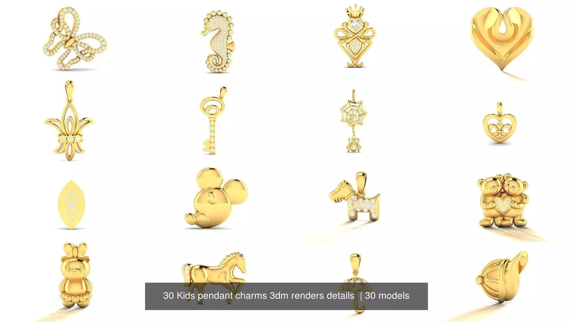 30 Kids pendant charms 3dm renders details 3D Model Pack