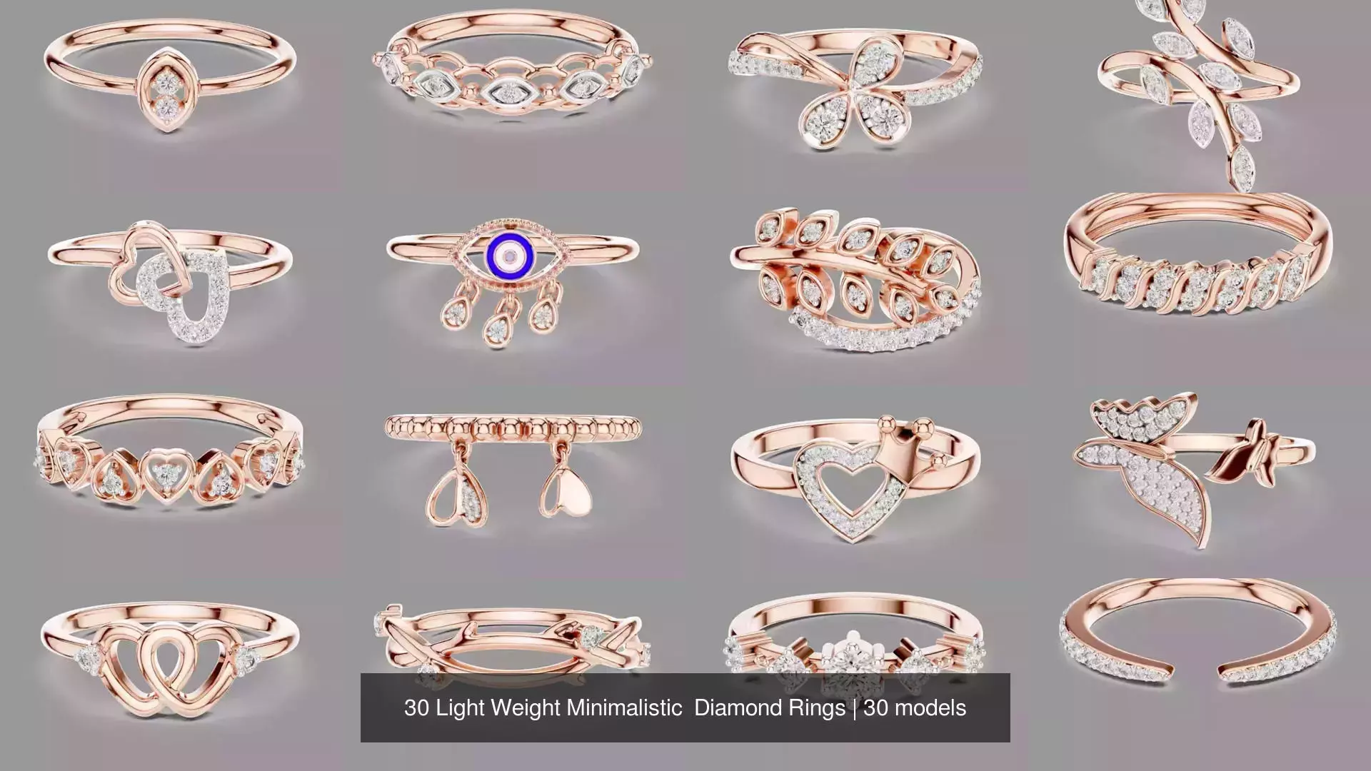 30 Light Weight Minimalistic Diamond Rings 3D Model Pack