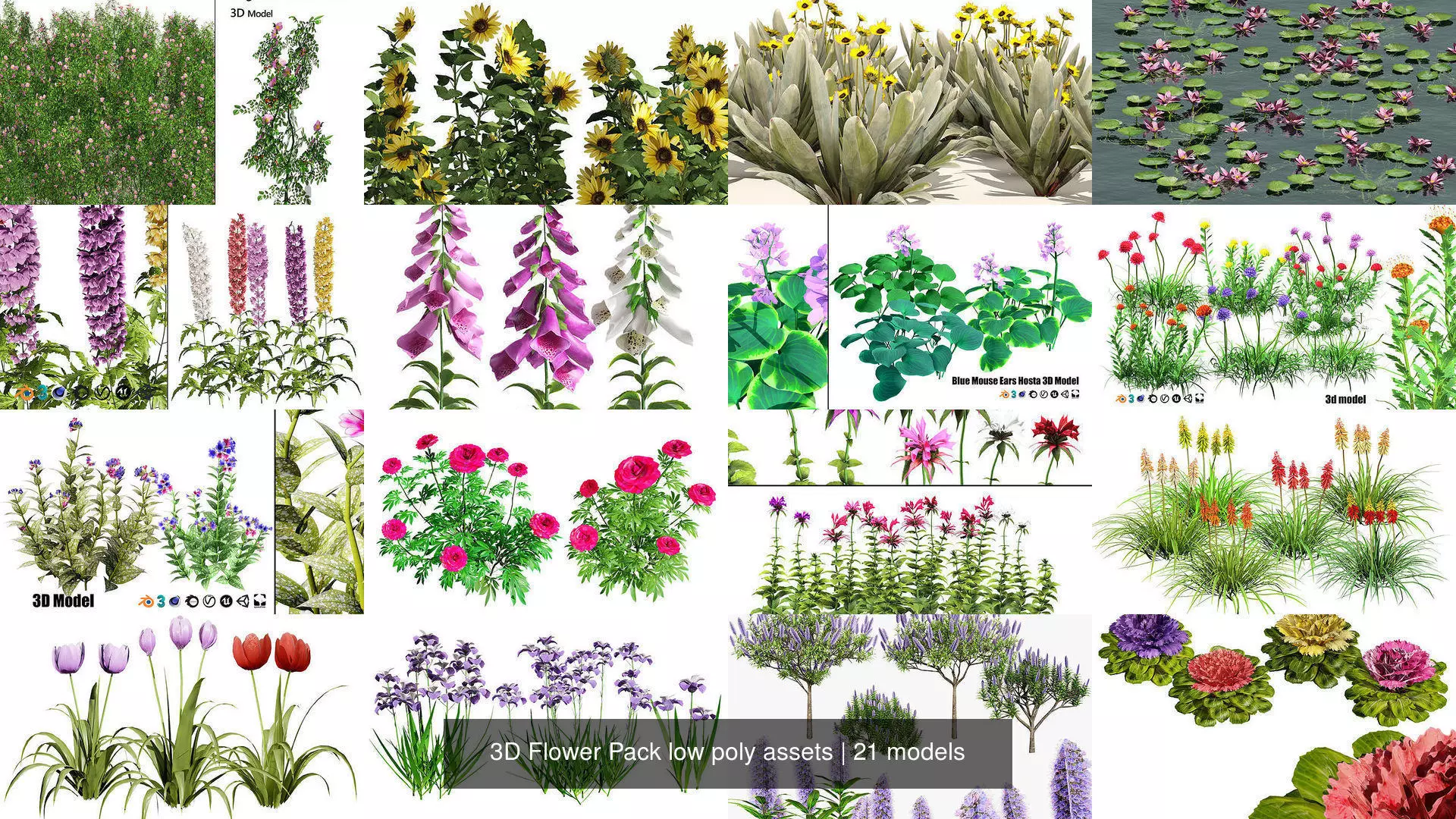 This 3D asset pack is perfect for adding realistic and vibrant floral details to your outdoor scenes. Featuring a diverse collection of low-poly flowering plants, this pack includes everything you need to create stunning gardens, parks, and landscapes.