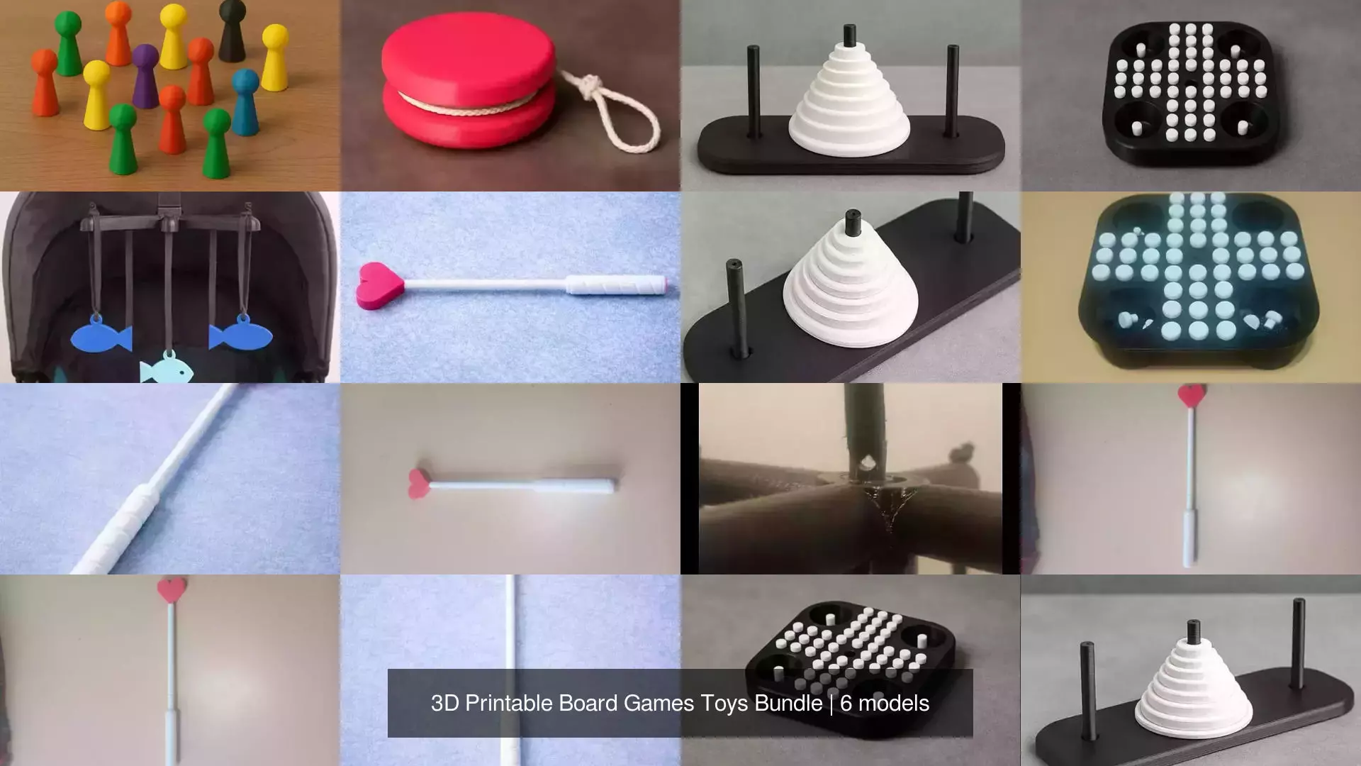 This 3D printable board games and toys pack includes six carefully designed models that combine classic games, creative toys, and decorative pieces, making it perfect for families, kids, educators, and makers.