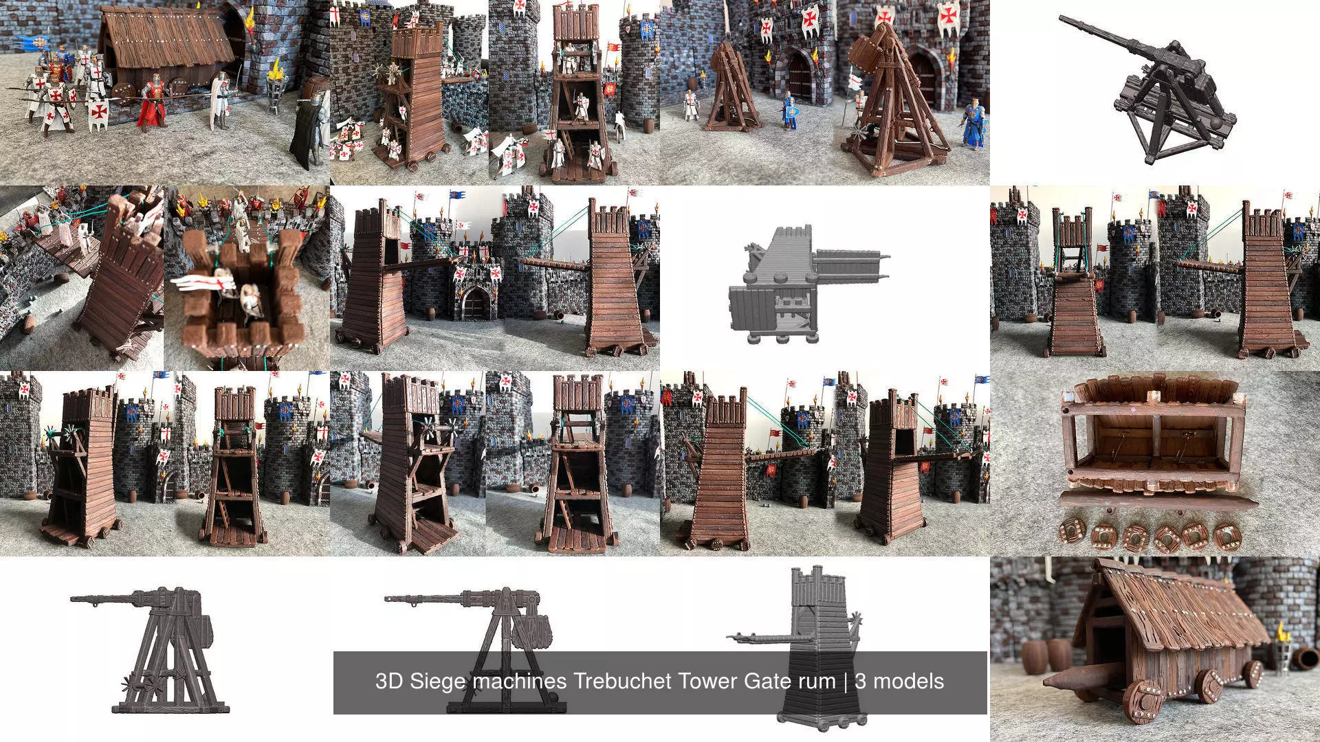 3D Siege machines Trebuchet Tower Gate rum 3D Model Pack