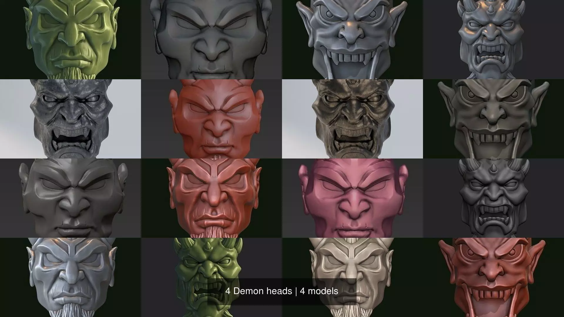 4 Demon heads 3D Model Pack