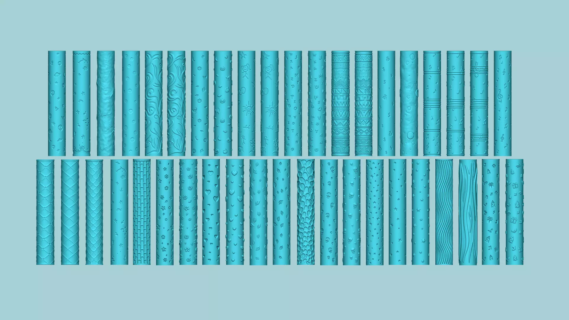 How does it work: just press the cylindrical texture roller against the material you want to apply the texture, and just roll it over and over to create an infinite texture.