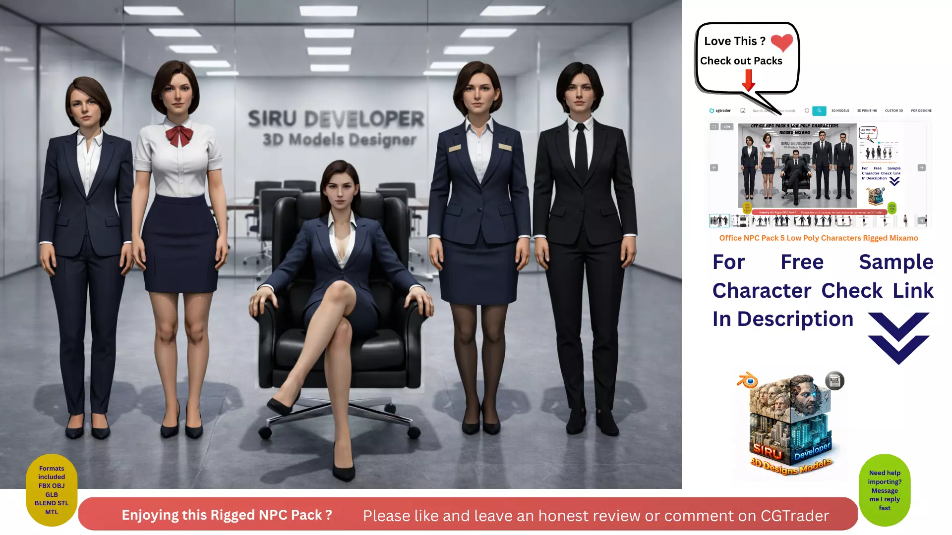This character pack is ideal for developers who need multiple office NPCs with consistent quality and style.