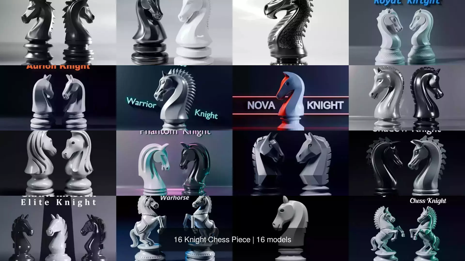 This Collection Include 16 Different Knight Pieces each have unique design: