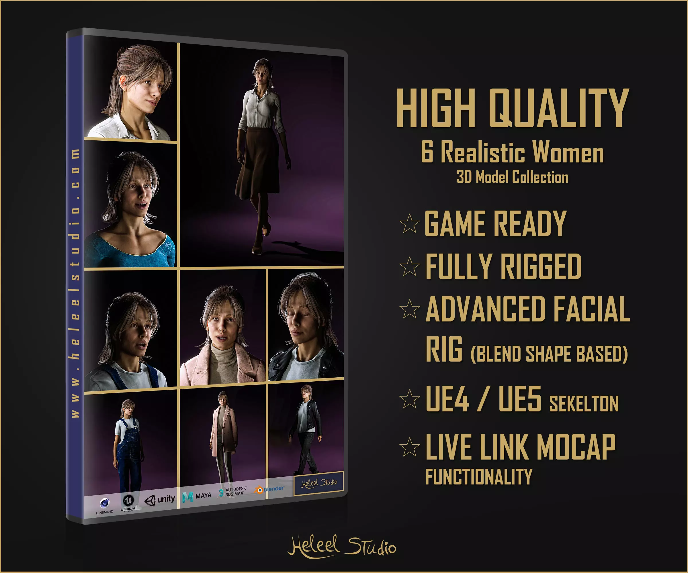 Unreal FBX (Contains body skeleton, expression blendshapes and embeds texutres)Maya FBX (Contains body skeleton, expression blendshapes and embeds texutres) Blender FBX (Contains body skeleton, expression blendshapes and embeds texutres) 3Ds Max FBX (Contains body skeleton, expression blendshapes and embeds texutres)