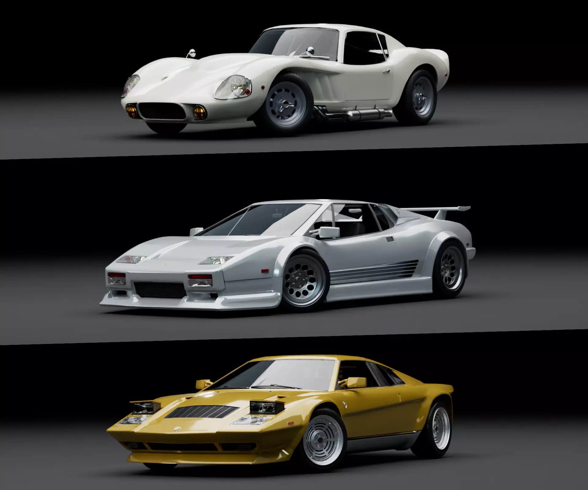 Bring retro power to your project with this detailed pack of three iconic-style cars, inspired by racing heritage and 70s–80s supercar design. Each model blends unique historical charm with optimized geometry for modern game engines and real-time rendering. Perfect for game developers, animators, and automotive artists seeking stylized but era-accurate cars.