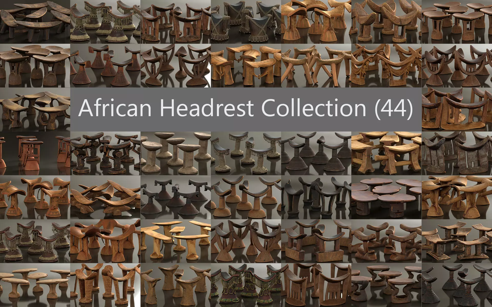 Wooden Africa Headrest - 3D Model Collection, 44 items.