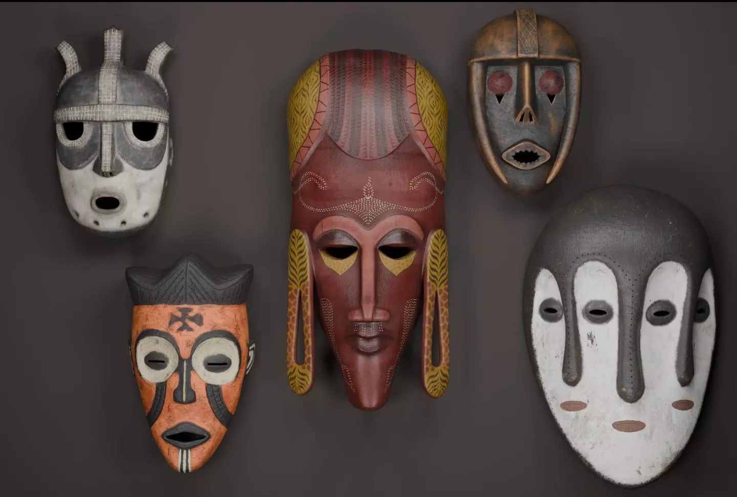 Authentic African mask collection. Set of 5 diverse designsEach representing a distinct tradition from different parts of the continent.You will receive 3d models of: