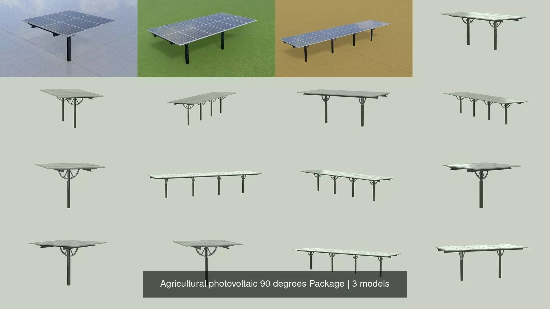 Agricultural photovoltaic 90 degrees Package low-poly 3d model