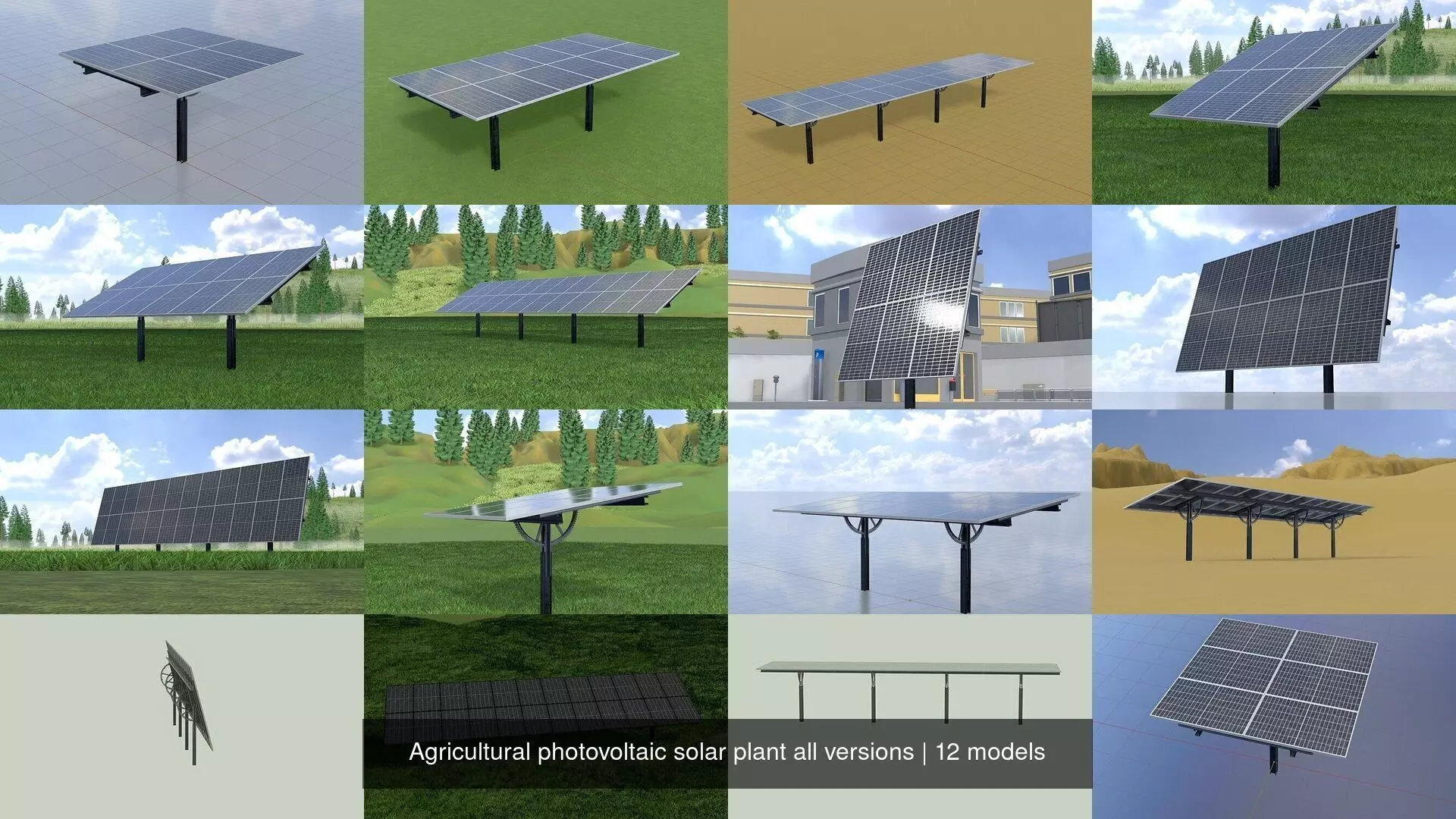 Agricultural photovoltaic solar plant all versions low-poly 3d model