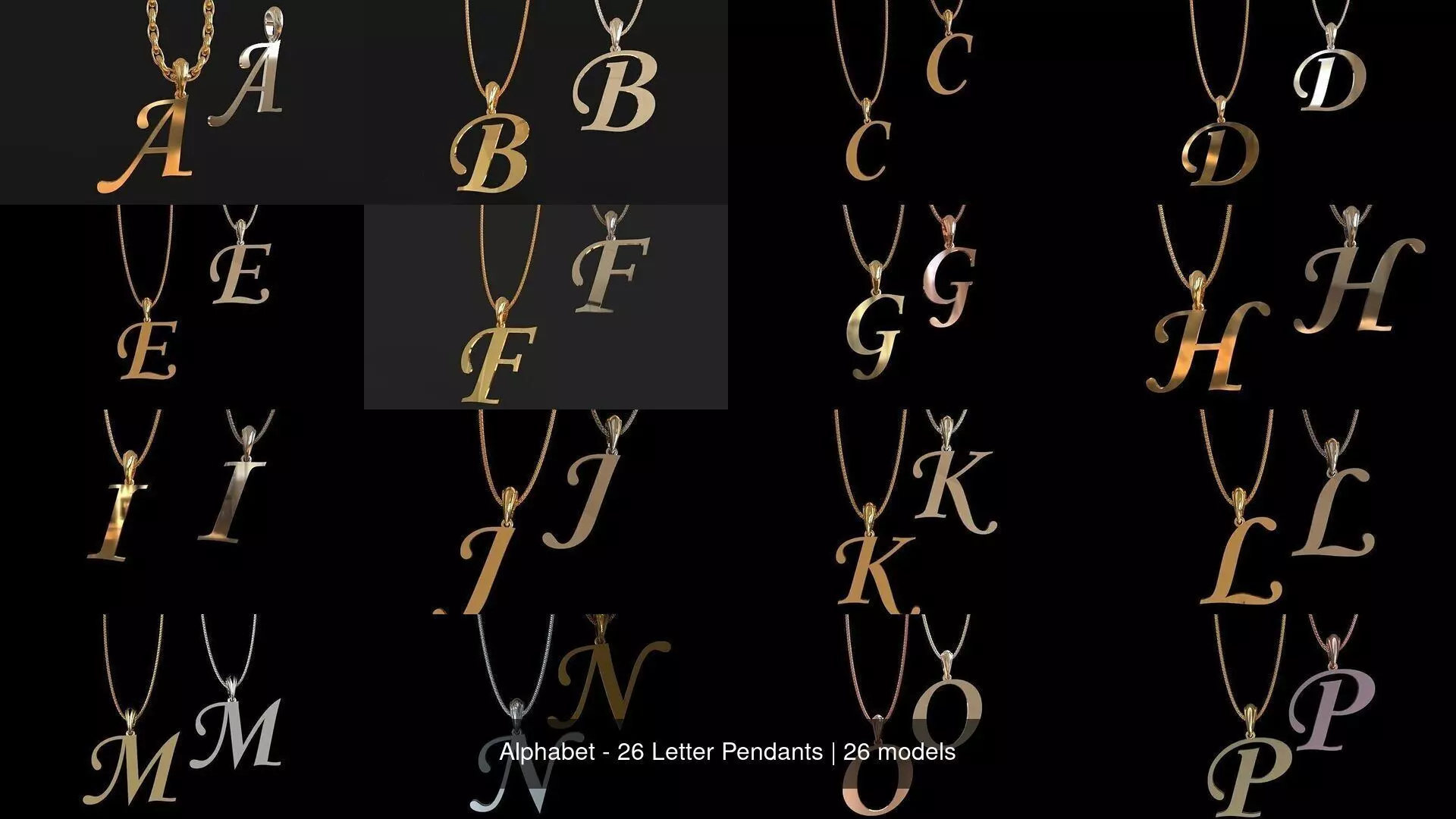 Alphabet - 26 Letter Pendants 3D Model Pack