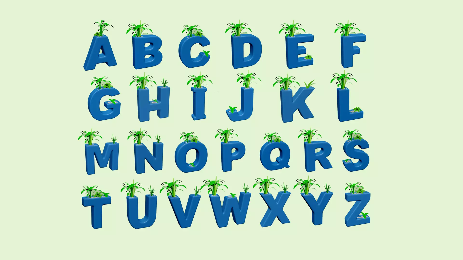 This is a collection I created of vases, with letters of the alphabet, to be used as decorative itens.The idea here is to decorate some space of your room, with letters of your name, being used as vases for flowers or succulents.Some letters from this collection has more than one spot for flowers or little stones.