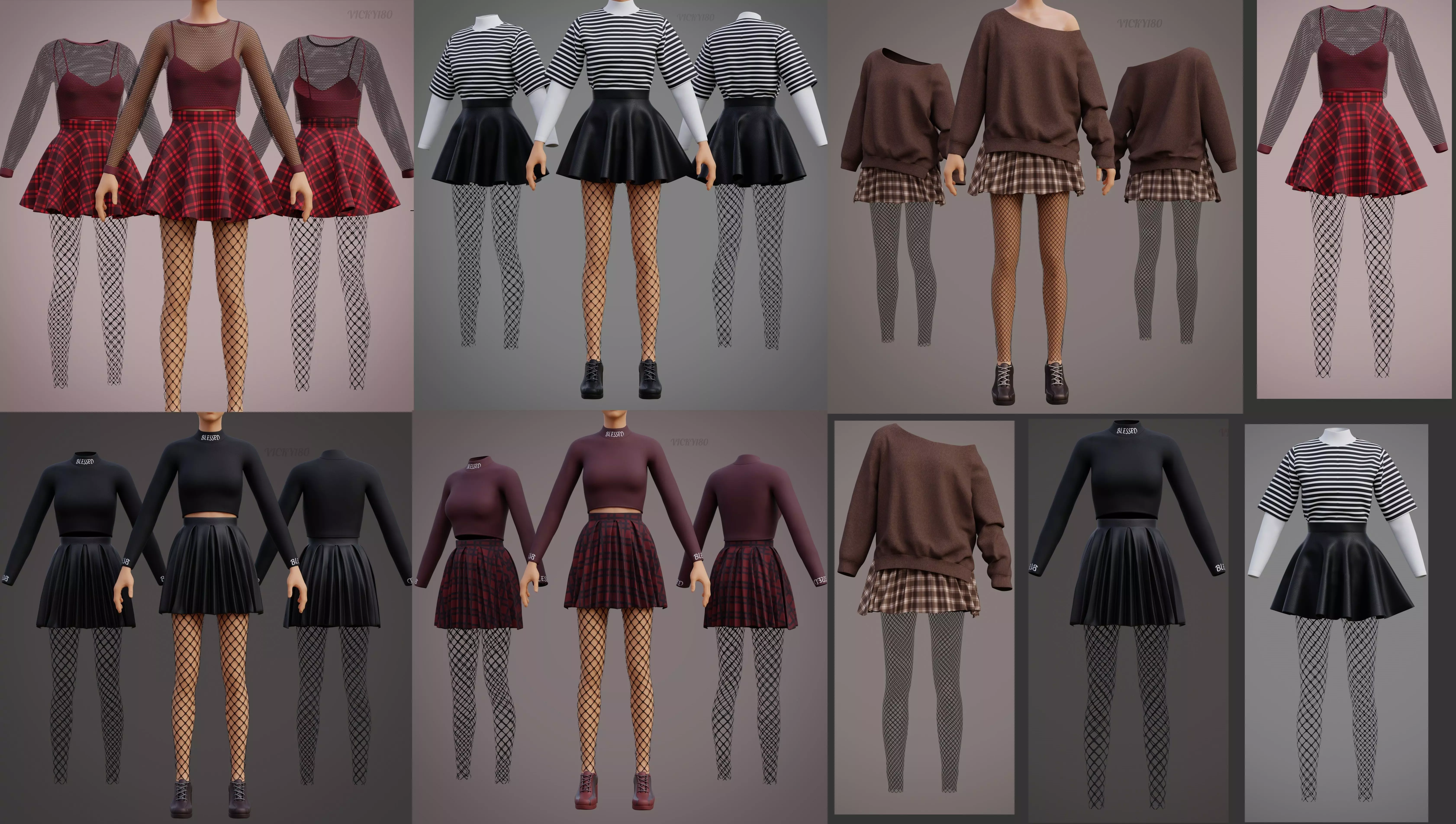 This is a high-quality, 3D Grunge Girl Clothing Bundle for any of your rendering projects. The model is a detailed design that allows for close-up renders with Blend file that contains already set up lighting and camera which you can easily import more props and render according to choice.