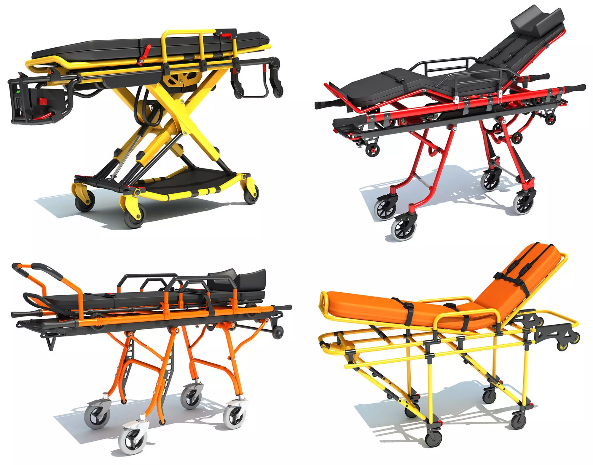 High detailed 4 ambulance trolley stretcher 3d models.For additional info, wireframes and more preview renders, or if you want to get separate models, please search by Product ID number below.