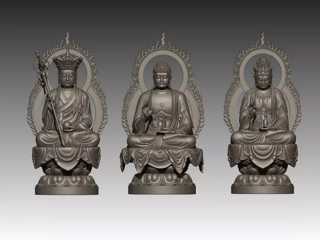 This is a high-resolution 3D model set of the Amitabha Trinity