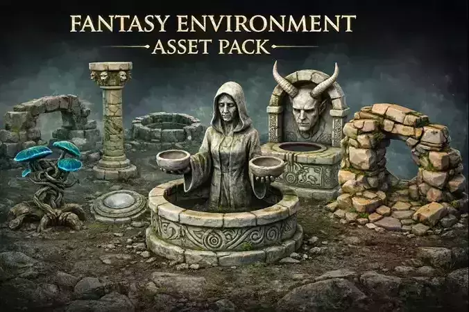 The Ancient Fantasy Ruins Environment Pack is a meticulously crafted collection of high-quality 3D assets designed to bring forgotten civilizations, mystical rituals, and primeval fantasy worlds vividly to life. This pack unifies stone, nature, and arcane symbolism into a cohesive visual language, making it ideal for game developers, cinematic artists, environment designers, and world builders who seek depth, atmosphere, and storytelling through environment art.