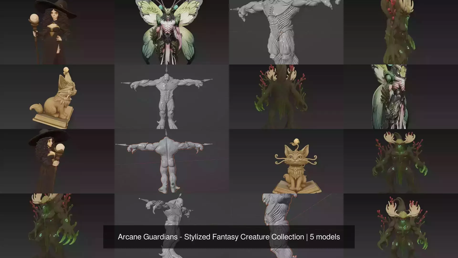 Enter a realm of ancient magic and wild imagination with the Arcane Guardians Collection — a curated set of five high-detail stylized fantasy characters.From the Tree Guardian of the forest to the Butterfly Warrior of light, each creature carries a unique energy inspired by myth, alchemy, and dreamlike worlds.