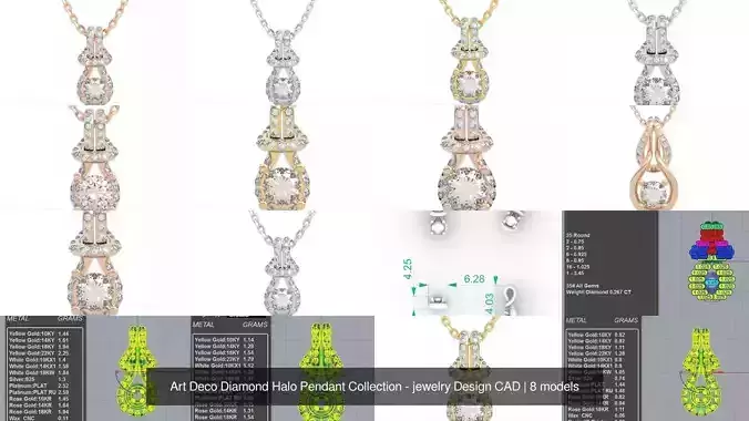 Premium Art Deco Diamond Pendant Collection - Complete Size RangeThis comprehensive 3D jewelry model collection features 8 meticulously crafted diamond pendant designs in the timeless Art Deco style, offering a complete size range from delicate everyday pieces to statement luxury pendants.