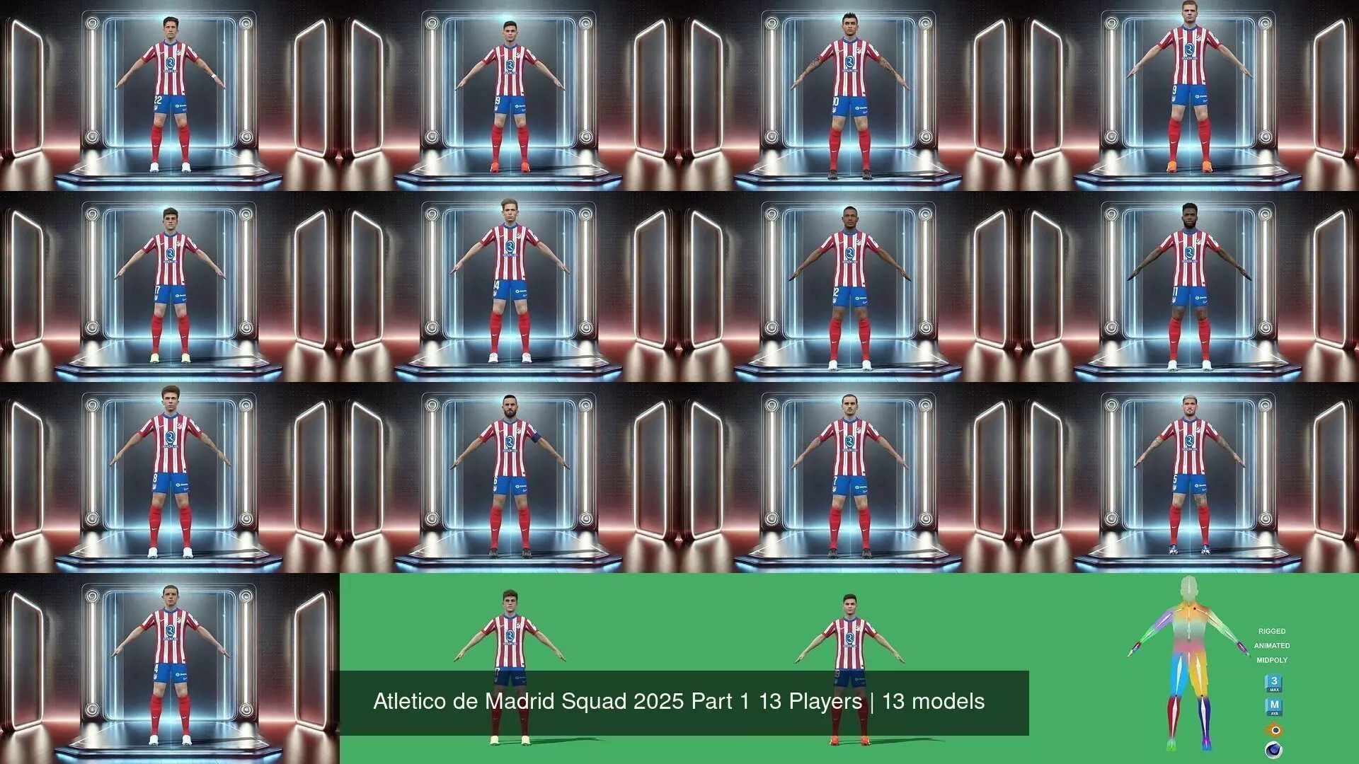 For sample download:https://3dpassion.net/product/atletico-de-madrid-squad-2025-part-1-13-players/
