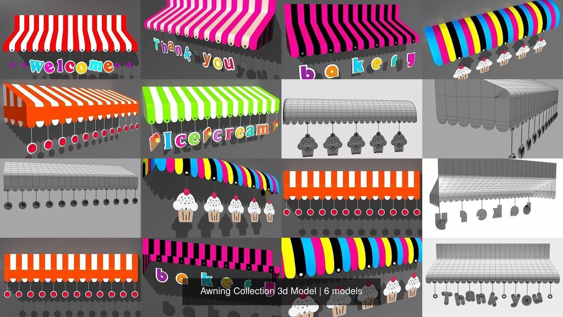 Awning Collection 3d Model ice cream shop awnings 3D Model Pack